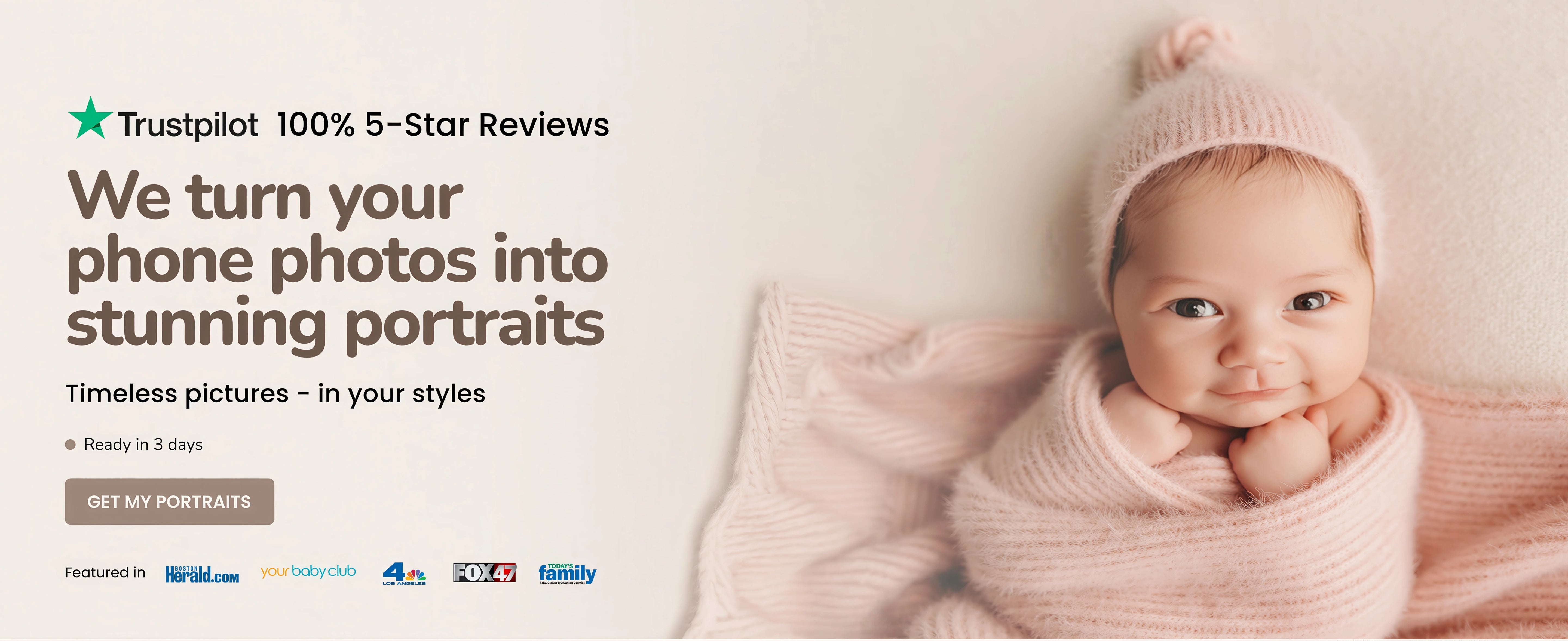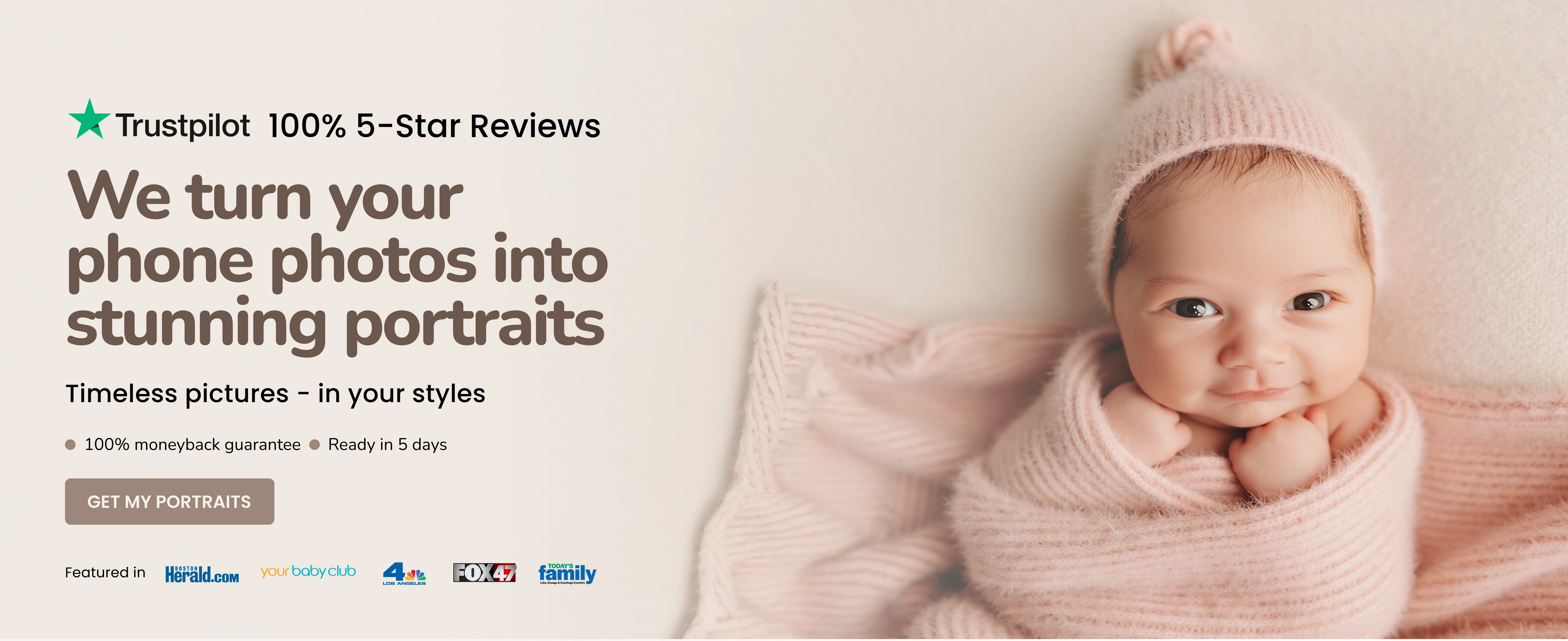 Our team use AI tech to make perfect portrait keepsakes, ready to download, print or share