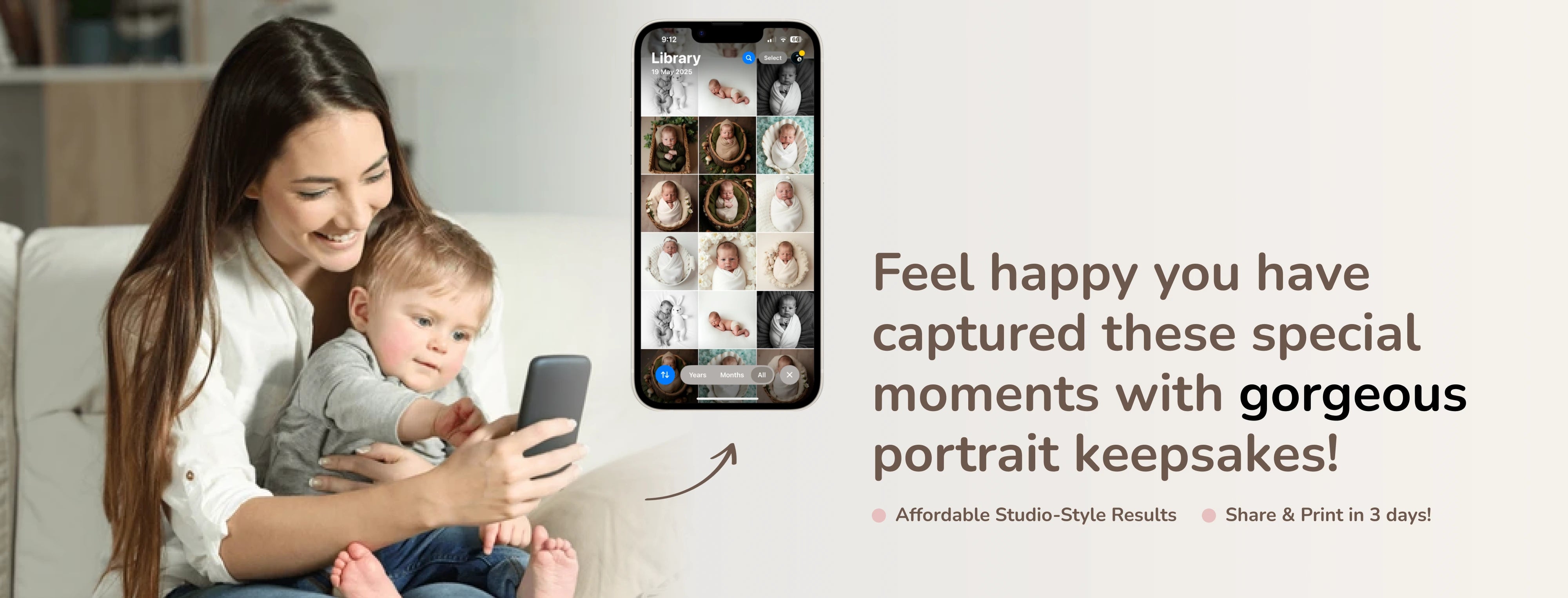 We faithfully place your baby into beautiful clothes and settings with AI - our team ensure every picture is perfect