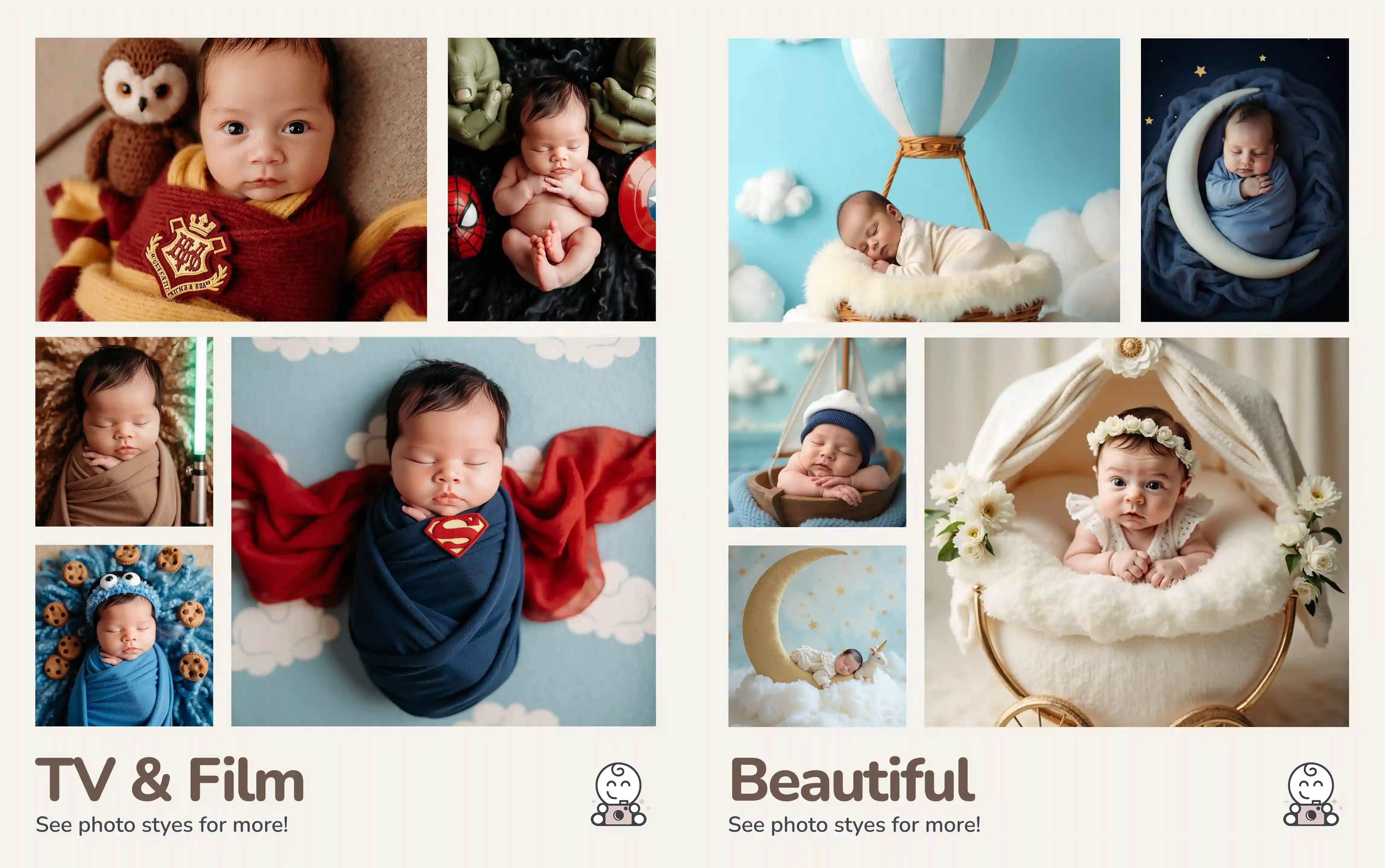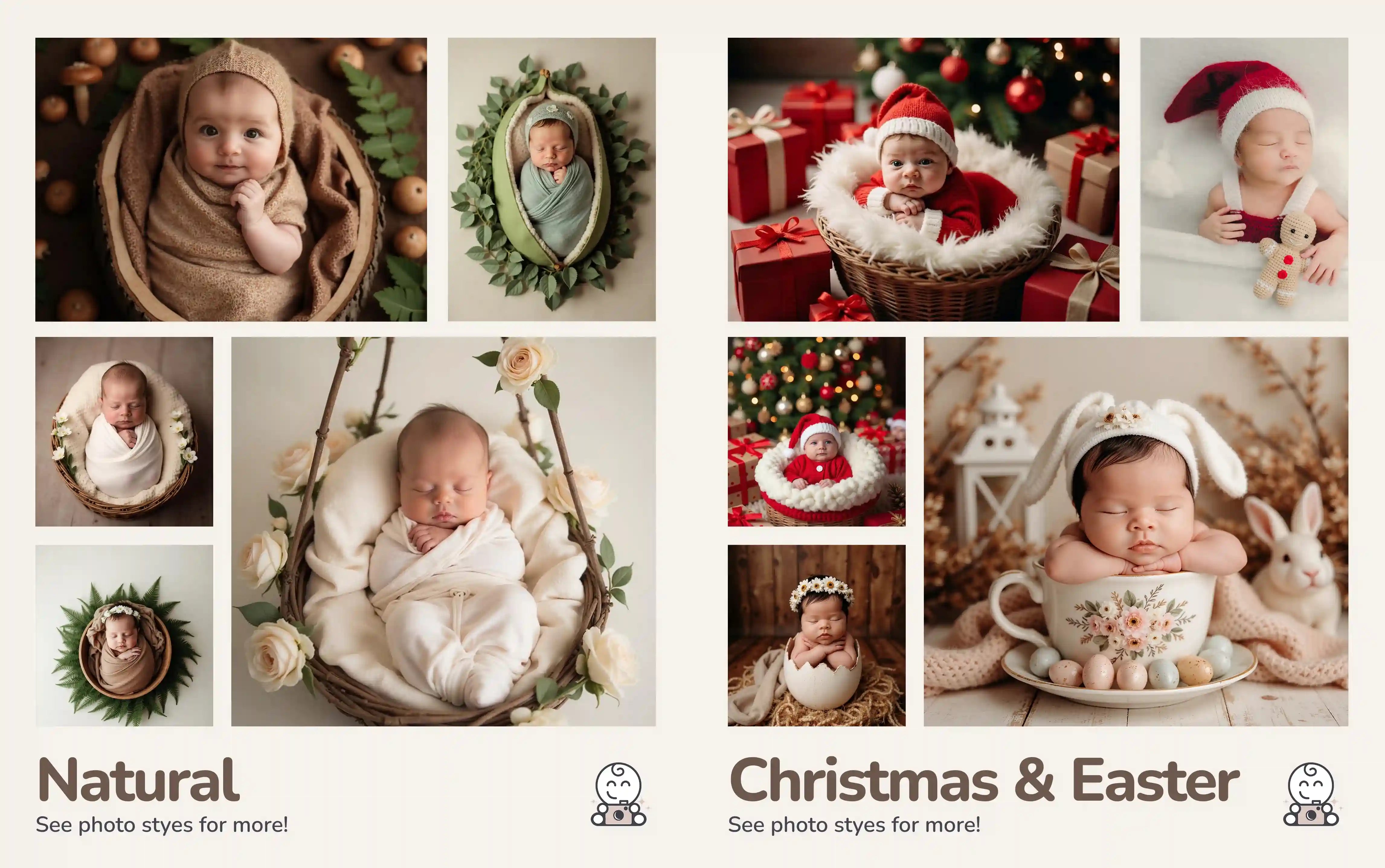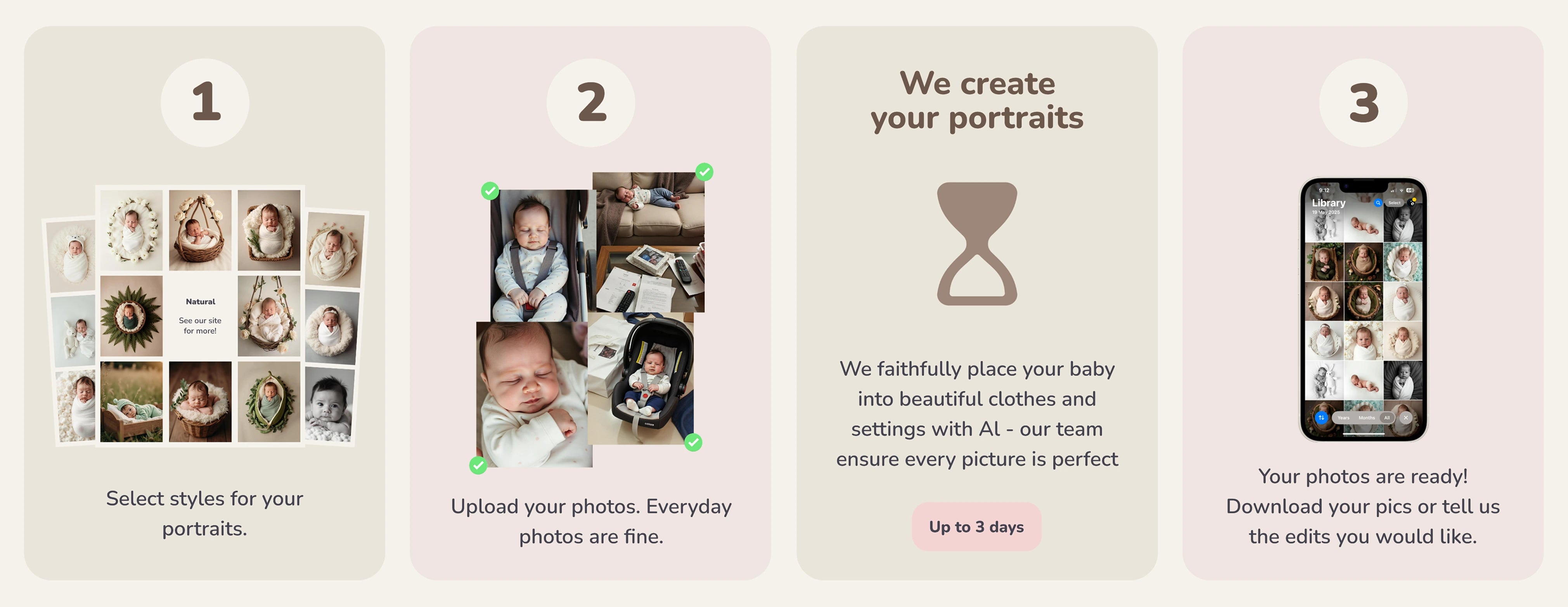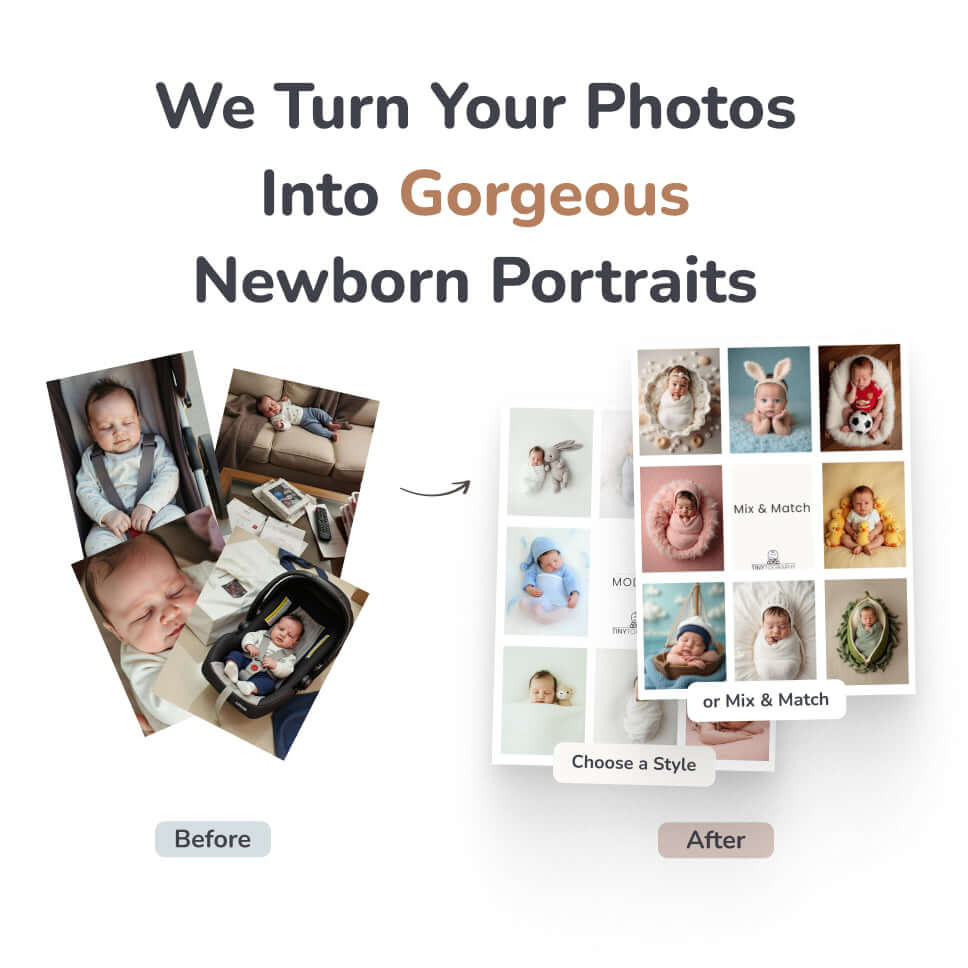 We faithfully place your baby into beautiful clothes and settings with AI - our team ensure every picture is perfect